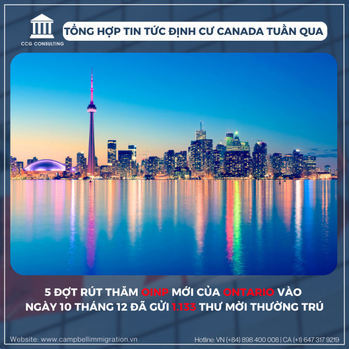 5 ĐỢT RÚT THĂM OINP MỚI CỦA ONTARIO VÀO NGÀY 10 THÁNG 12 ĐÃ GỬI 1.133 THƯ MỜI THƯỜNG TRÚ